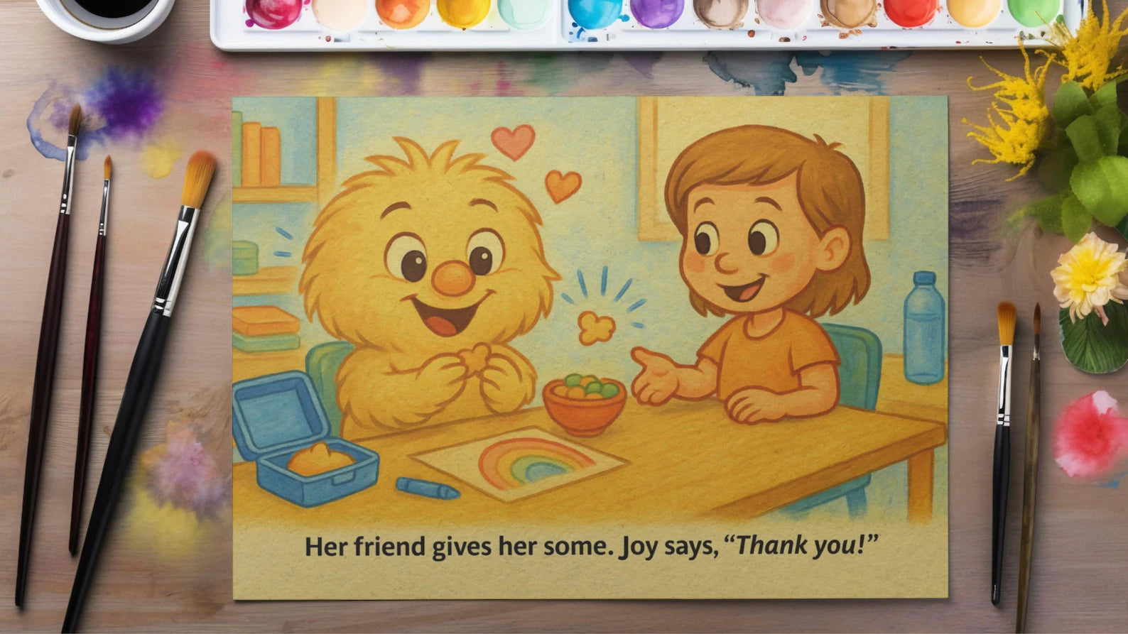 Read ➡ ask 1 question (“What should Joy do?”) ➡ color ➡ practice in real life